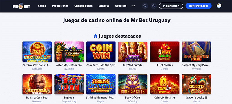 Aquí se añaden los títulos que los proveedores le proporcionan al casino a medida que son lanzados, de modo que Mr Bet Uruguay es una página que está actualizándose constantemente en cuanto a oferta de juegos.