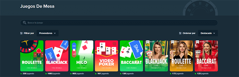 El casino de Stake nos ofrece una excelente variedad de juegos, son más de 3000 juegos con tragamonedas, juegos de mesa, casino en vivo y shows de TV, además de su especialidad los juegos originales y exclusivos de Stake, solo aquí podrás jugarlos son casi 100 opciones diferentes.